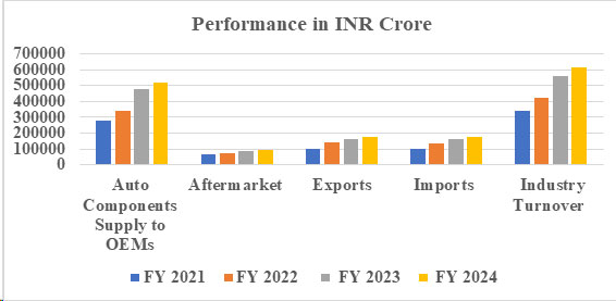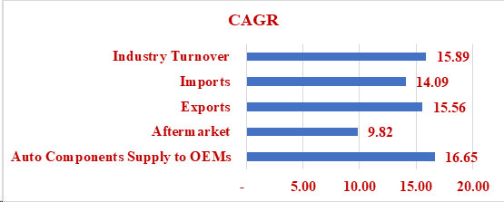 | Auto Components Supply to OEMs | Aftermarket | Exports | Imports | Industry Turnover | |