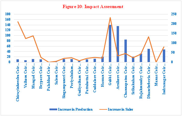 There is increase in production and sales due to regeneration of Traditional Coir Clusters in India and is given in figure10.