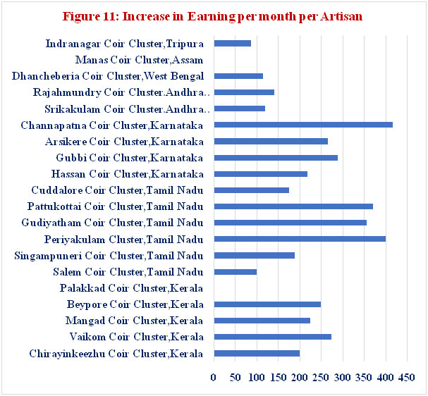 As per figure11, there is increase in Earning per month per Artisan and it from 86.66% to 416.67% and some clusters are started recently and is given as nil.