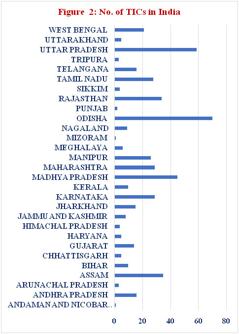The physical performance of TICs is given in figure 2 where Orissa, MP and UP have got a greaternumber of TICs.